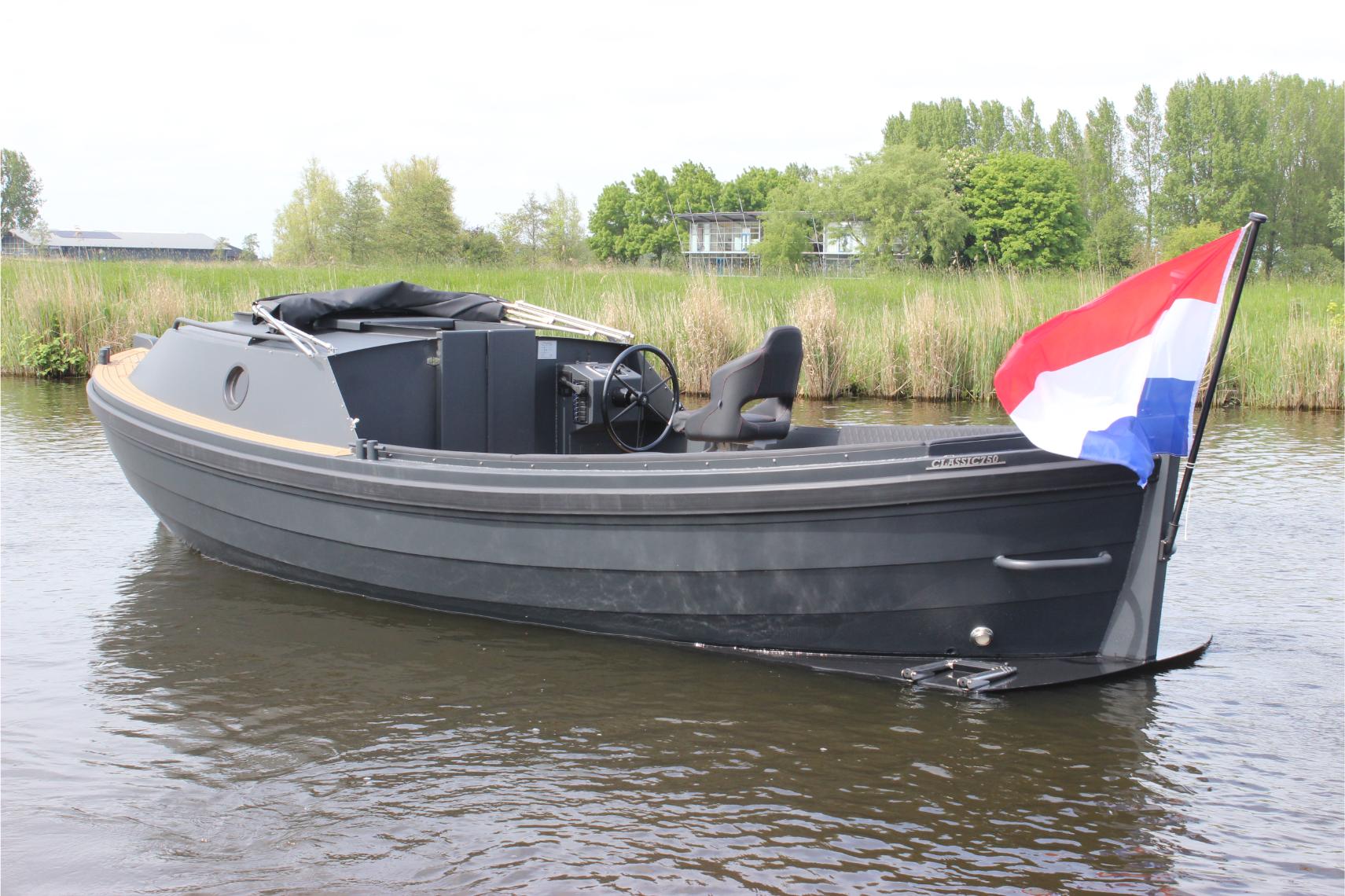De Classic 750 is een overnaadse snelvarende reddingssloep gemaakt van oersterk alumi-nium van 5mm dik en is zeewater bestendig. De romp heeft een plannerend onderwaterschip met doorlopende sprayrail. De boot heeft een geringe diepgang van 40cm. Een stoer en onverwoestbare sloep die garant staat voor goede vaareigenschappen. Met een zee van ruimte aan boord biedt het de mogelijkheid voor grote groepen. Met deze sloep bent u in staat om met grote gezelschappen een lekker dagje te gaan varen door de grachten, of juist het ruime water. Het schip is zowel leverbaar met een dieselmoter als elek-trische aandrijving,